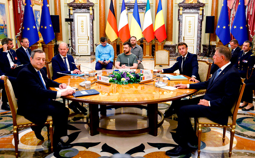Ο πρώην πρωθυπουργός της Ρωσίας, Ντμίτρι Μεντβέντεφ, χλεύασε την επίσκεψη των Μακρόν, Σολτς και Ντράγκι στο Κίεβο για την συνάντησή τους με τον Βολοντίμιρ Ζελένσκι. Σε ανάρτησή του στο Twitter, o Ντμίτρι Μεντβέντεφ έγραψε με ειρωνικό τρόπο για την επίσκεψη: «Ευρωπαίων φίλων των βατράχων, των λουκάνικων και των σπαγγέτι είναι άχρηστη… Θα υποσχεθούν την ένταξη της χώρας στην Ε.Ε και παλιά όπλα και, εν συνεχεία, μεθυσμένοι από ουκρανικό ποτό, θα πάρουν το τρένο της επιστροφής, χωρίς να φέρουν την Ουκρανία πιο κοντά στην ειρήνη». Επίσκεψη στο Κίεβο για Μακρόν, Σολτς και Ντράγκι Η ουκρανική πόλη Ιρπίν, όπως πριν απ’ αυτήν η Μπούτσα, έχει γίνει σύμβολο της «ωμότητας» του πολέμου που διεξά