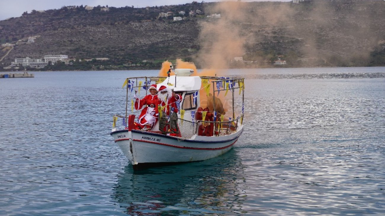 Μ’ έναν ιδιαίτερα πρωτότυπο τρόπο κατέφθασε ο Άγιος Βασίλης, ο οποίος άφησε στην άκρη το έλκυθρο του, ανέβηκε σ’ ένα γερανοφόρο και από εκεί ψηλά χαιρετούσε τα πα