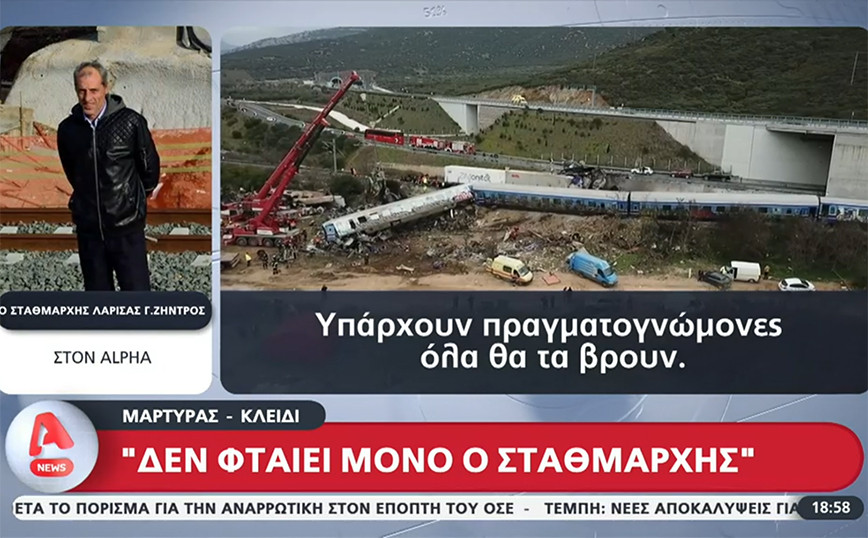 Συνάδελφος του κατηγορούμενου σταθμάρχη της Λάρισας για την τραγωδία στα Τέμπη, κατέθεσε στον ανακριτή και σε δημόσιες δηλώσεις που έκανε, ανέφερε πως δεν φταίει μόνο ένα άτομο για τη σύγκρουση των τρένων. Μιλώντας στο κεντρικό δελτίο ειδήσεων του Alpha, ο Γ.Ζήντρος είπε ότι «πήγα, κατέθεσα χθες στον ανακριτή. Τις αλήθειες είπα. Υπάρχουν πραγματογνώμονες να τα βρουν όλα». Επίσης, πρόσθεσε πως «αν ήταν του σταθμάρχη μόνο, δεν θα γινόταν το λάθος. Πρέπει να κάνουν πολλοί λάθη για να γίνει ένα ατύχημα στον ΟΣΕ». «Δεν μπορούμε να τα φορτώσουμε όλα στον σταθμάρχη, όχι επειδή είμαι σταθμάρχης κι εγώ. Δεν φταίει μόνο ο σταθμάρχης. Να αναζητηθούν ευθύνες, θα τα βρουν οι πραγματογνώμονες», σημείωσ