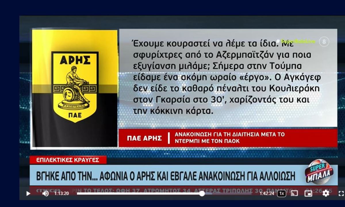Α/ ΠΑΕ ΑΕΚ: "Βάσει των αναφερομένων στο από 26/4/2023 Φύλλο Αγώνα, το οποίο σας γνωστοποιήθηκε, κατ’ άρθρο 15 του Κανονισμού Αγώνων Ποδοσφαίρου (Κ.Α.Π.), στην από 26/4/2023 Έκθ