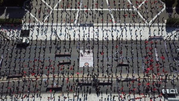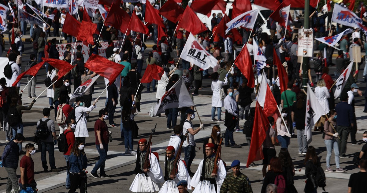 Πορεία του ΠΑΜΕ με αποστάσεις στο Σύνταγμα – Δείτε το βίντεο