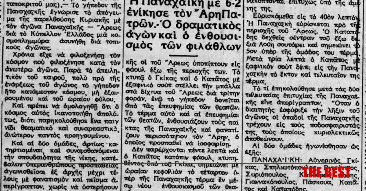 Το δημοσίευμα είναι από την αθλητική εφημερίδα της Αθήνας, "Αθλητισμός" στις 7 Νοεμβρίου 1938.