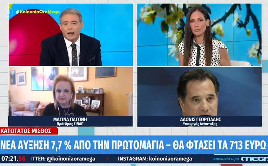 Για τα φαινόμενα ακρίβειας στην αγορά αλλά και για την αύξηση του κατώτατου μισθού που ανακοίνωσε χθες ο πρωθυπουργός μίλησε το πρωί ο υπουργός Ανάπτυξης και Επενδύσεων Άδωνις Γεωργιάδης στο Mega. Όπως τόνισε το μέλος της κυβέρνησης, «το παγκόσμιο πρόβλημα είναι η ακρίβεια, πόλεμο έχουμε, πληθωρισμό έχουμε, γι’ αυτό έχουμε και την ακρίβεια. Κάθε μέρα ανακοινώνεται κάτι καινούριο από την κυβέρνηση. Είχαμε μια νέα αύξηση του κατώτατου μισθού, η οποία αθροιστικά φτάνει το 10%, καθώς είχαμε και τον Ιανουάριο αύξηση, έχουμε κάνει χρηματοδοτικές ενισχύσεις για να αυξήσουμε το εισόδημα των συμπολιτών μας και έχουμε μειώσει ασφαλιστικές εισφορές». Αναφορικά με τα φαινόμενα κερδοσκοπίας ο υπουργός