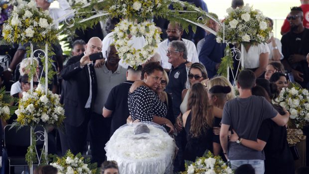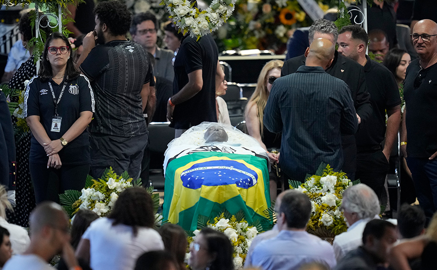 Οι Βραζιλιάνοι αποχαιρετούν τον Πελέ, αποδίδοντας φόρο τιμής στον θρύλο του ποδοσφαίρου μετά τον θάνατό του σε ηλικία 82 ετών, περνώντας μπροστά από το φέρετρό του που βρίσκεται στο κέντρο του γκαζόν του γηπέδου των μεγάλων κατορθωμάτων του «Βασιλιά» του ποδοσφαίρου, στη Σάντος. Οι πόρτες του γηπέδου Vila Belmiro, της Σάντος, άνοιξαν χθες στις 15:00 ώρα Ελλάδας για το 24ωρο λαϊκό προσκύνημα στον Πελέ. Όταν τους επέτρεψαν να μπουν, οι οπαδοί επευφημούσαν και άρχισαν να φωνάζουν «Πελέ, Πελέ, Πελέ!». Δεκάδες στεφάνια, που στάλθηκαν από προσωπικότητες του ποδοσφαίρου όπως ο σταρ της Παρί ΣΖ, Νεϊμάρ ή ξένοι σύλλογοι όπως η Ρεάλ Μαδρίτης τοποθετήθηκαν γύρω από το φέρετρο, προστατευμένα κάτω από