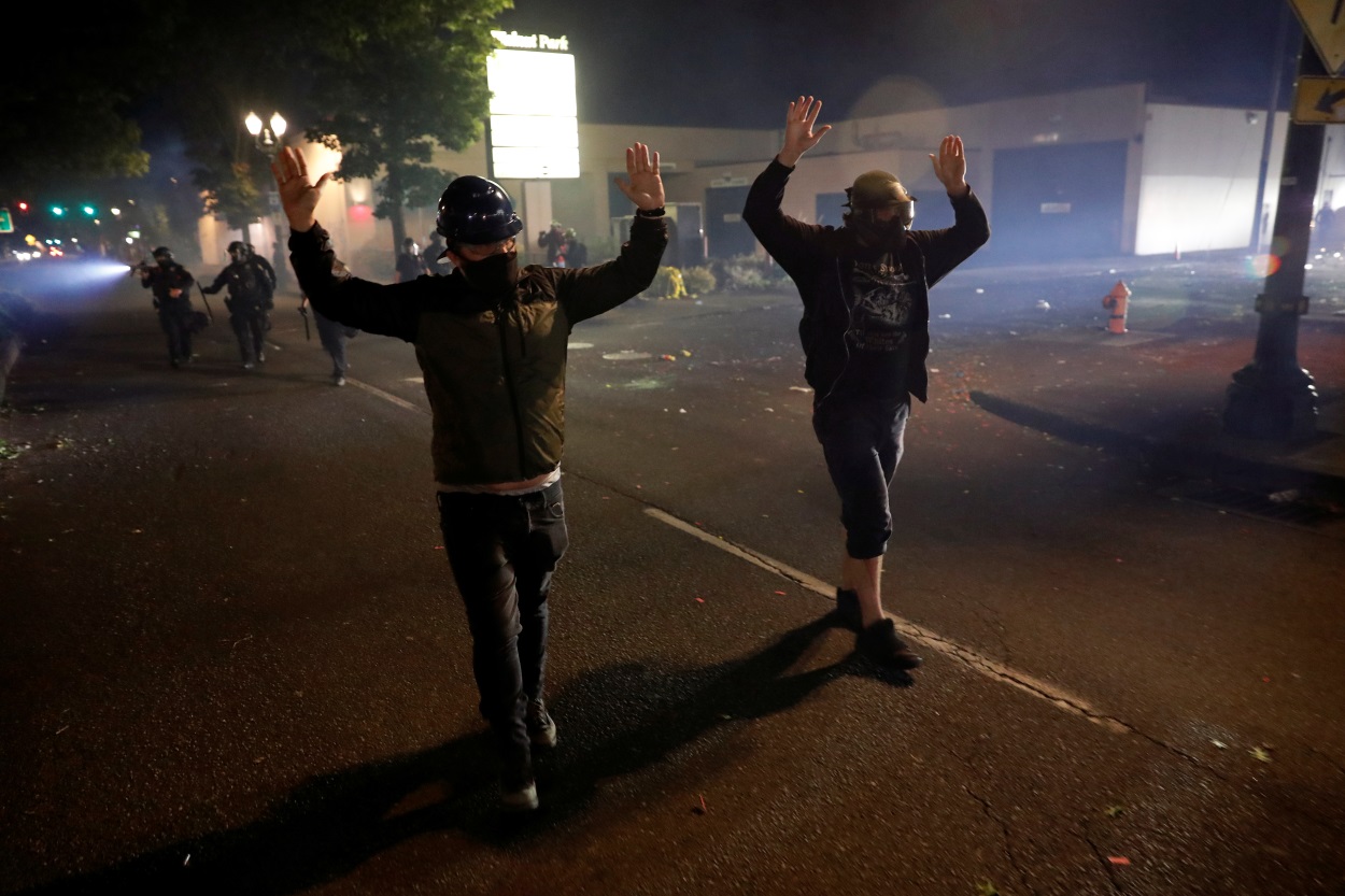 Ο Τραμπ, συνεχίζοντας – δύο μήνες πριν από τις προεδρικές εκλογές – να προβάλλει την εικόνα του προέδρου που είναι «σκληρός έναντι του εγκλήματος», τόνισε ότι πάνω από 200 άνθρωποι συνελήφθησαν για τις ταραχές των τελευταίων ημερών, ανάμεσά τους 100 στο Πόρτλαντ, στην πολιτεία Όρεγκον.