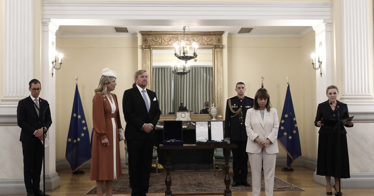 Ο υπουργός Εξωτερικών Νίκος Δένδιας υποδέχθηκε το βράδυ της Κυριακής στο αεροδρόμιο «Ελευθέριος Βενιζέλος» στην Αθήνα, τον Βασιλιά Γουλιέλμο-Αλέξανδρο και τη Βασίλισσα Μάξιμα της Ολλανδίας, οι οποίο πραγματοποιούν επίσκεψη στην Ελλάδα έως τις 2 Νοεμβρίου, έπειτα από πρόσκληση της Προέδρου της Δημοκρατίας Κατερίνας Σακελλαροπούλου. To πρόγραμμα του βασιλικού ζεύγους της Ολλανδίας στην Αθήνα θα ξεκινήσει τη Δευτέρα 31 Οκτωβρίου με την κατάθεση στεφάνου στο Μνημείο του Αγνώστου Στρατιώτη και στη συνέχεια, στις 09:35, θα μεταβούν στο Προεδρικό Μέγαρο, όπου θα λάβει χώρα η επίσημη Τελετή Υποδοχής, καθώς και η Τελετή παρασημοφόρησης.
