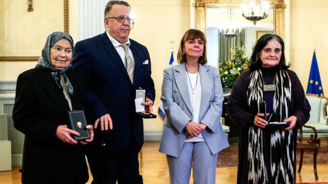 Βαθύτατα συγκινημένη η Πρόεδρος της Δημοκρατίας Κατερίνα Σακελλαροπούλου, απένειμε σήμερα (18.12.2024) σε ειδική τελετή στο Προεδρικό Μέγαρο, τα παράσημα, του Χρυσού Σταυρού του Τάγματος του ...