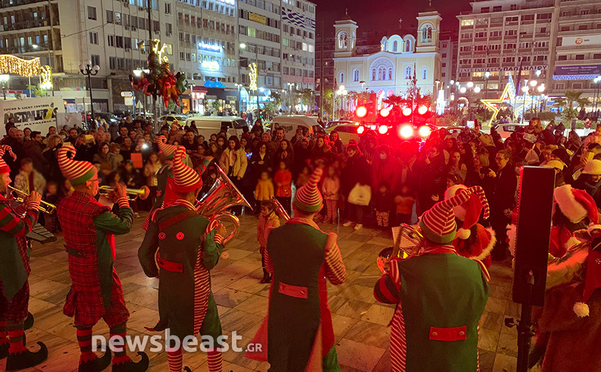 «Κόκκινη νύχτα» στον Πειραιά: Ξωτικά, μουσική και ο κόσμος στο κλίμα των Χριστουγέννων – Δείτε βίντεο