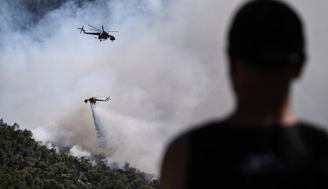 Ωστόσο, σύμφωνα με τον κ. Σκορδίλη, «η εικόνα έχει καλυτερεύσει, καθώς επιχειρούσαν τρία ελικόπτερα πραγματοποιώντας συνεχείς ρίψεις νερ