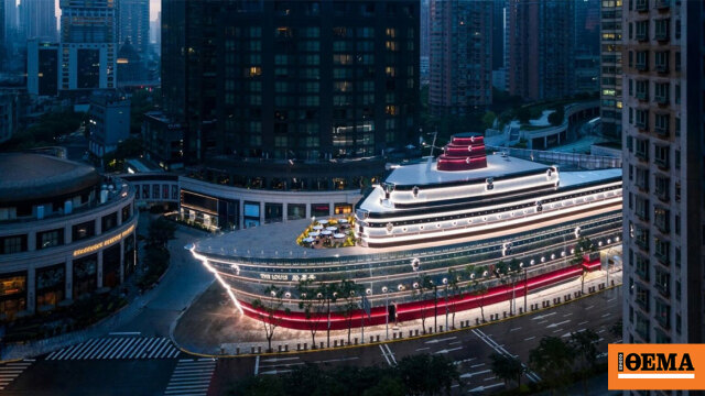 Μια μνημειώδης κατασκευή με τη μορφή ενός κρουαζιερόπλοιου, άνοιξε πρόσφατα τις πόρτες του στην επιχειρηματική περιοχή Nanjing West Road στη Σαγκάη