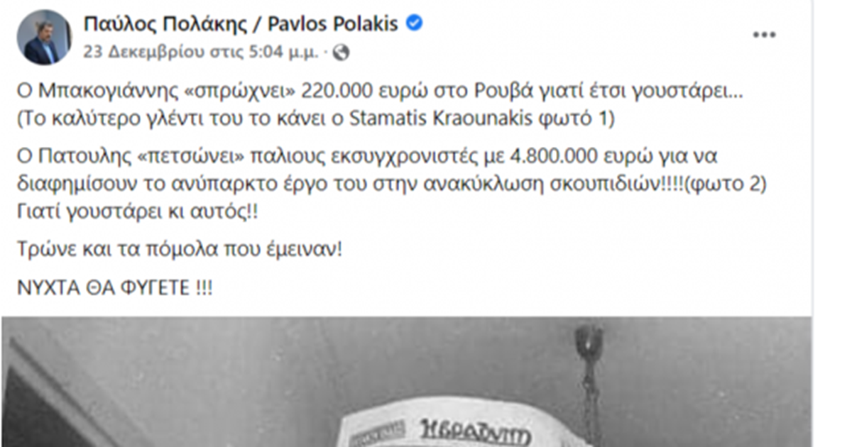 Η ελληνική αστυνομία προβληματίζεται ιδιαίτερα για την σωματική ακεραιότητα του Σάκη Ρουβά.Ο Σάκης Ρουβάς βρίσκεται στο επίκεντρο της αστυνομίας το τελευταίο χρονικό διάστημα, καθώς οι αρχές ανησυχούν για την σωματική ακεραιότητα του καλλιτέχνη. Συγκεκριμένα, η ΕΛΑΣ φοβάται ενδεχόμενο γιαούρτωμα που μπορεί να υπάρξει, επειδή ο Σάκης Ρουβάς θα τραγουδήσει για 17 λεπτά στο Λυκαβηττό παραμονή Πρωτοχρονιάς, σε μία συναυλία χωρίς θεατές, η οποία θα κοστίσει 211.000 ευρώ. Μάλιστα, ο προβληματισμός δημιουργήθηκε στους κόλπους της ΕΛΑΣ, από μία εκδήλωση στο Facebook, όπου καλεί σε πράξεις κατά του γνωστού καλλιτέχνη. Με τίτλο «Γιαούρτωμα του Σάκη Ρουβά στην Πρωτοχρονιάτικη Συναυλία», η εκδήλωση στη δημο