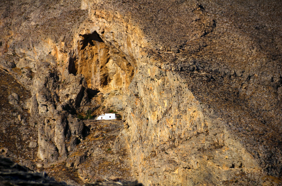 Σαντορίνη – Το εκκλησάκι της Παναγίας παραδομένο στην αγκαλιά του επιβλητικού Μέσα Βουνού