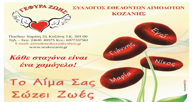 Η αιμοδοσία, η οποία θα πραγματοποιηθεί σε συνεργασία με το πανεπιστημιακό νοσοκομείο ΑΧΕΠΑ, θα γίνει την Δευτέρα 25 Μαΐου στο Δημοτικό Αθλητικό Κέντρο Καλαμαριάς (Τριπόλεως 27 και Ριζούντος).