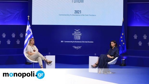 H Ολυμπιονίκης Σοφία Μπεκατώρου στο πλαίσιο του 6ου Οικονομικού Φόρουμ των Δελφών, το οποίο τελεί υπό την Αιγίδα της Α.Ε. της Προέδρου της Δημοκρατίας, Κατερίνας Σακελλαροπούλου, συνομίλησε με την Αφροδίτη Παναγιωτάκου, Διευθύντρια Πολιτισμού του Ιδρύματος Ωνάση.