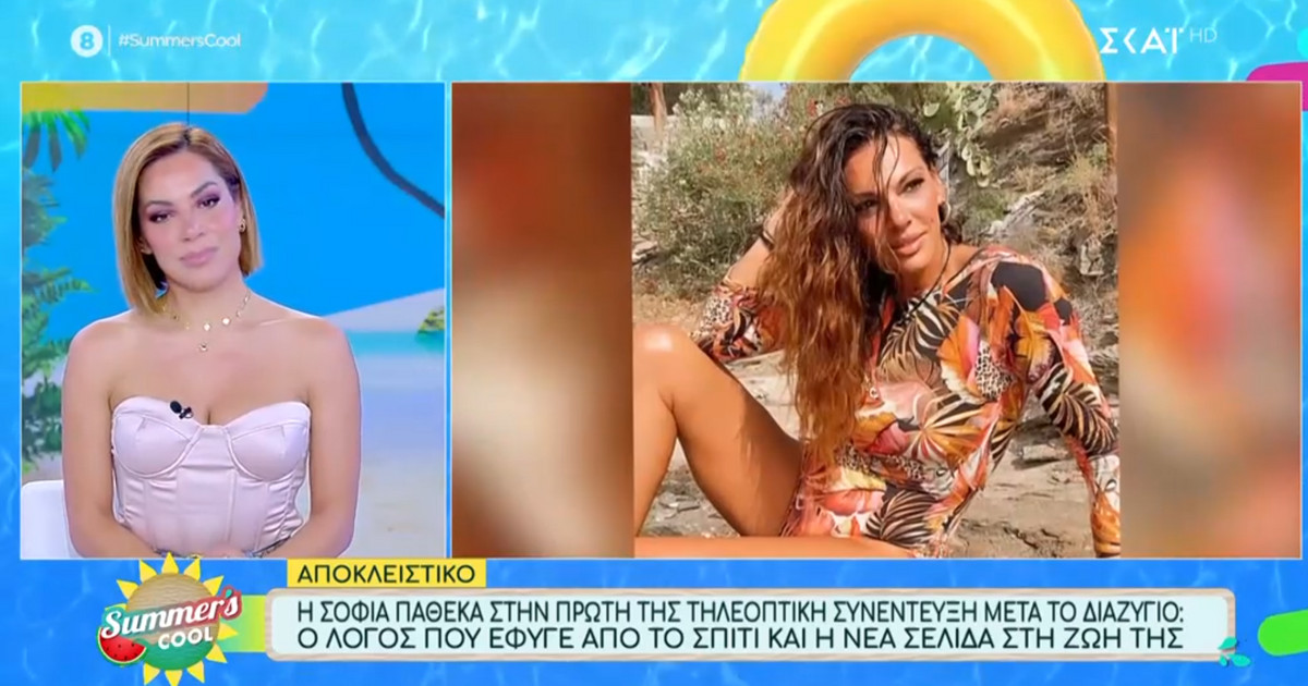 Η Σοφία Παθέκα μίλησε για το διαζύγιό της με τον επί 22 χρόνια σύζυγό της Λεωνίδα Παπασταύρου, εκφράζοντας τα συναισθήματά της με αφορμή αυτή τη μεγάλη αλλαγή στη ζωή της. «Είμαι καλά, προσπαθώ να βρω τα πατήματά μου, είναι διαφορετικό καλοκαίρι και για μένα. Συνήθως δεν απασχολώ τον χώρο με τα προσωπικά μου, αυτή τη φορά δεν μπορώ να πω ότι ένιωσα και πολύ άνετα. Είδα κάποιες εμφανίσεις του πρώην συζύγου μου και ομολογώ ότι δεν μου άρεσαν σε αυτή τη φάση της ζωής μας. Με στεναχώρησε πάρα πολύ, δεν είναι ωραίο να κλείνεις την πόρτα μετά από 22 χρόνια αλλά, για να γίνει, σίγουρα υπάρχει κάποιος λόγος», εξομολογείται η Σοφία Παθέκα στην κάμερα του Summer’s Cool. «Λόγω αθλητισμού και πρωταθλ