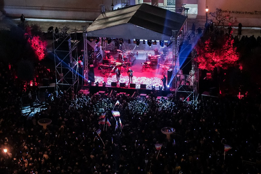 Πλήθος κόσμου συγκεντρώθηκε χθες το βράδυ στο Σύνταγμα (29/3) στη Συναυλία Ειρήνης για την Ουκρανία, που τόσο πολύ συζητήθηκε τις τελευταίες μέρες. Στη συναυλία, που διοργάνωσε η συλλογικότητα «Αλληλεγγύη για όλους», τραγούδησαν γνωστοί καλλιτέχνες, μεταξύ άλλων ο Χρήστος Θηβαίος, η Νατάσα Μποφίλιου, η Γιώτα Νέγκα, η Λίνα Νικολακοπούλου, ο Γιώργος Νταλάρας, η Ελένη Τσαλιγοπούλου κ.ά. Οι επιλογές τραγουδιών έδιναν το δικό τους μήνυμα: από το «Ποιος τη ζωή μου» στο «Ανεμολόγιο», και από τα «Παραπονεμένα λόγια» στην «Μπαλάντα του κυρ Μέντιου». Η συναυλία ξεκίνησε με πλάνα από την βομβαρδισμένη Ουκρανία και οι συγκεντρωμένοι κρατώντας τις σημαίες της ειρήνης, τραγουδούσαν και φώναζαν αντιπολε