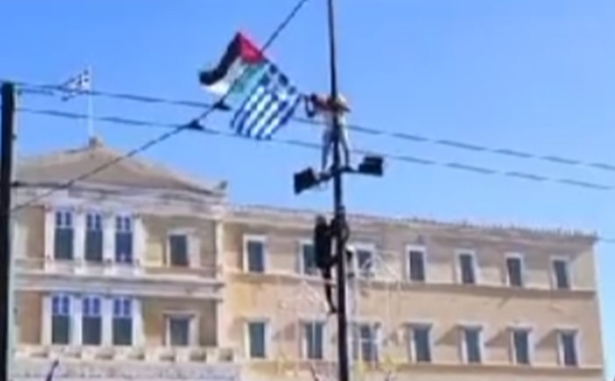 Οικονόμου: Η αστυνομία ταυτοποίησε και προσήγαγε έναν 22χρονο Παλαιστίνιο που εμφανίζεται σε βίντεο, το οποίο αναπαράγεται στα μέσα κοινωνικής δικτύωσης, να υψώνει τη σημαία της χώρας του κατά τη διάρκεια συγκέντρωσης στο Σύνταγμα, την Κυριακή 5 Νοεμβρίου 2023.