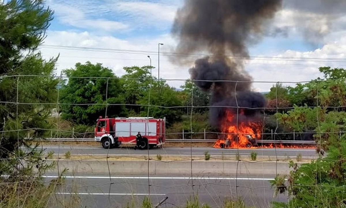 Επί τόπου έσπεευσαν, στο 60ο περίπου χιλιόμετρο της Εθνικής Οδού, στο ρεύμα κυκλοφορίας προς Αθήνα, δυο οχήματα της Πυροσβεστικής Υπηρεσίας με τέσσερις πυροσβέστες, για την κατάσβεση της πυρκαγιάς στο όχημα, που καταστράφηκε ολοσχερώς.