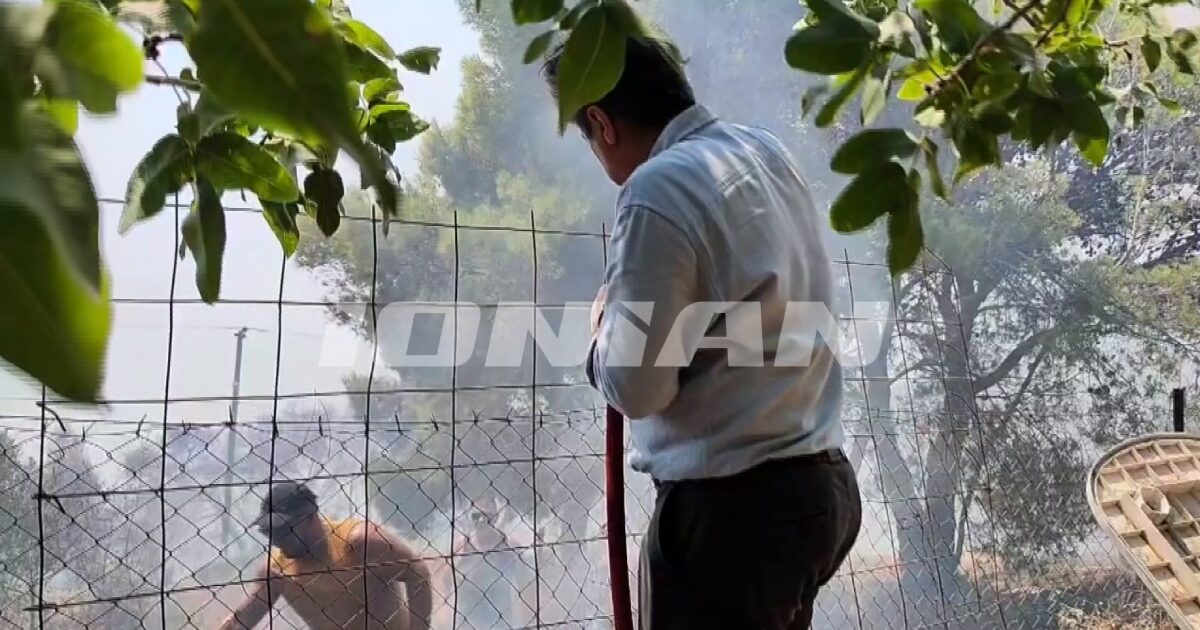 Φωτιά στην Ζάκυνθο: Bίντεο με τον δήμαρχο να σβήνει φωτιά σε αυλή σπιτιού στον Αγαλά
