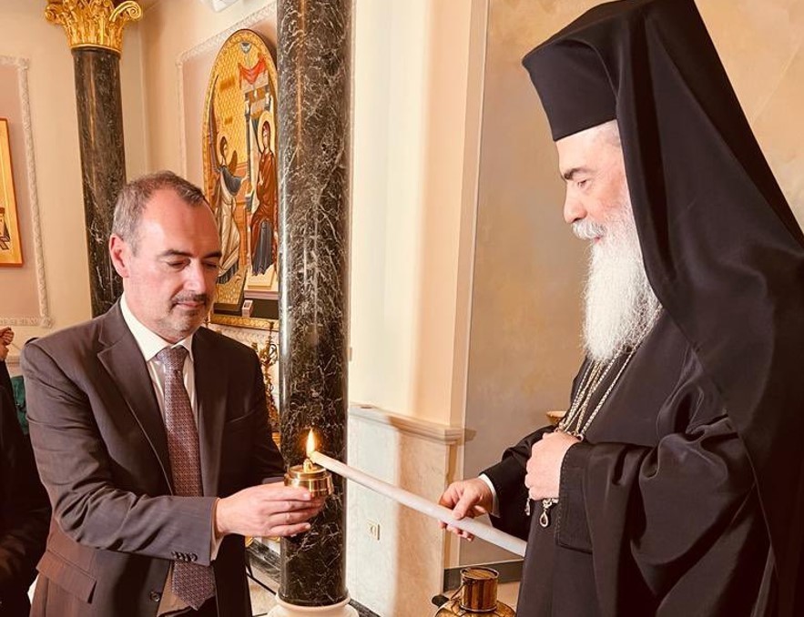 Ο υφυπουργός Εξωτερικών θα παραλάβει το Άγιο Φως από τον Μακαριώτατο Πατριάρχη Ιεροσολύμων, κ.κ. Θεόφιλο Γ’, με τον οποίο θα έχει επίσης συνάντηση.