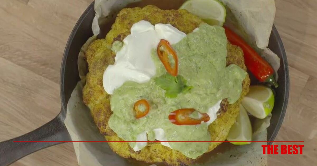 Κουνουπίδι στο φούρνο, ψητό, ολόκληρο με σως αβοκάντο από την Αργυρώ Μπαρμπαρίγου.
