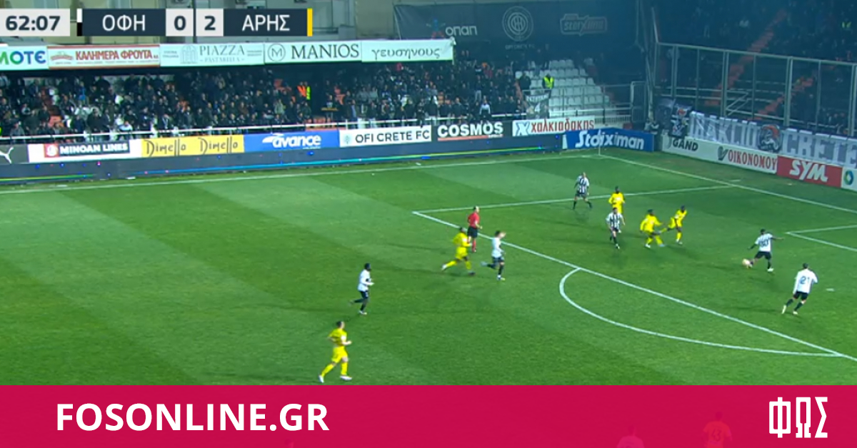 Πολύ κοντά στην εξασφάλιση της συμμετοχής του στα play off βρίσκεται ο Άρης έπειτα από την επιβλητική νίκη του με 3-0 επί του ΟΦΗ στο «Θεόδωρος Βαρδινογιάννης». Τα γκολ των Λούκας Ρουπ (10’), Βλάντιμιρ Νταρίντα (30’) και Χουάν Ιτούρμπε (90′) έκαναν τη διαφορά για την ομάδα του Απόστολου Τερζή που έβαλε τέλος σε ένα αρνητικό σερί τεσσάρων ηττών σε όλες τις διοργανώσεις. Υποχρέωσε, παράλληλα, τους Κρητικούς να αρχίσουν να σκέφτονται τη διαδικασία των play out. Το παιχνίδι ξεκίνησε με καλό ρυθμό από τις δυο ομάδες. Μόλις στο 4’, από ενέργεια του Νουά Ντικό, ο Ερικ Λάρσον με το δεξί έστειλε την μπάλα δίπλα από τη συμβολή των δοκών της εστίας του Χουλιάν Κουέστα. Στην αντίπερα περιοχή, μ