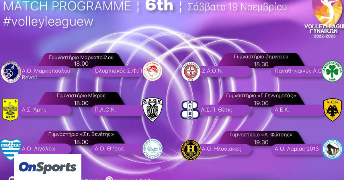 Το clasico της Θεσσαλονίκης ανάμεσα σε Άρη και ΠΑΟΚ δεσπόζει στο πρόγραμμα της 6ης αγωνιστικής στην Volley League Γυναικών.