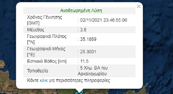 Αρκαλοχώρι: Σεισμός 3,6 της κλίμακας Ρίχτερ