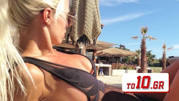 Εκείνο, όμως, που κλέβει αμέσως και δη με ευκολία τα βλέμματα είναι το πληθωρικό της μπούστο στο λουλουδάτο της μπικίνι!
