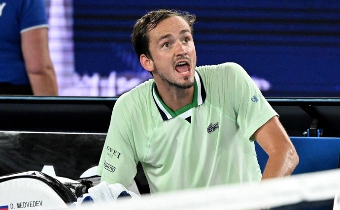 Μάλιστα, ο Μεντβέντεφ έχασε την ψυχραιμία του, αποκαλώντας "ηλίθιο" τον διαιτητή.
