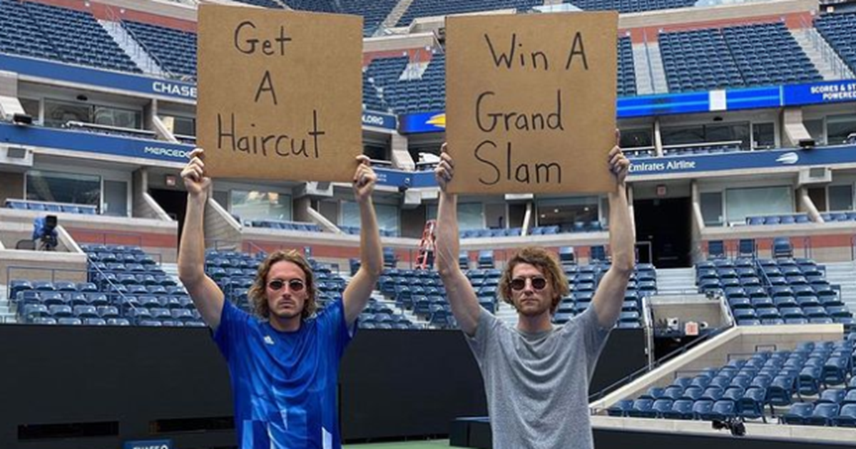 Ο γνωστός «dude with sign», προέτρεψε τον Στέφανο Τσιτσιπά να κερδίσει ένα Grand Slam!Μια συνάντηση που πολλοί ήθελαν να συμβεί. Ο Στέφανος Τσιτσιπάς βρέθηκε με το «dude with sign», τον διάσημο μέσω Istagram «τύπο» που σχολιάζει τα πάντα μέσω της αυτοσχέδιας ταμπέλας που κρατάει. Με αφορμή την παρουσία του στις ΗΠΑ, για το επικείμενο US Open, ο Έλληνας τενίστας έβγαλε φωτογραφία με τον «σωσία» του, αφού οι δύο άνδρες έχουν πολλές ομοιότητες στα χαρακτηριστικά, καθώς και το κούρεμα. Ο Τσιτσιπάς κρατάει μια πινακίδα που γράφει «Κουρέψου» και ο Σεθ, όπως αποκαλείται, μια πινακίδα που γράφει «Κέρδισε ένα Grand Slam». Μάλιστα, ο Έλληνας τενίστας σχολίασε κάτω από την ανάρτησή του στο Instagram,