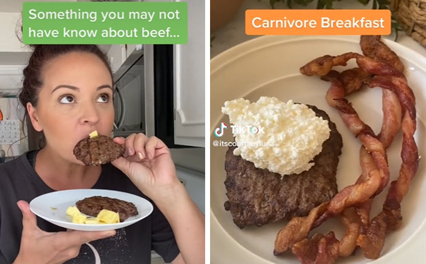 Μια γυναίκα δοκιμάζει μια εναλλακτική δίαιτα με αποτέλεσμα να καταναλώνει μόνο κρέας και ισχυρίζεται ότι χάρη στη συγκεκριμένη διατροφή κατάφερε να χάσει 13 κιλά σε έξι μήνες, αφού «αφαίρεσε τους υδατάνθρακες» από τη διατροφή της. Η 38χρονη Courtney Luna αναφέρει ότι δεν τρώει κανένα λαχανικό και ζάχαρη, αλλά αντιθέτως στηρίζεται στα ζωικά προϊόντα, όπως οι μπριζόλες, τα λουκάνικα και τα μπέργκερ, σύμφωνα με τη nypost.com. Σε σειρά βίντεο που έχει αναρτήσει στο TikTok εξηγεί ότι πήρε αυτή την απόφαση, εφόσον είχε δοκιμάσει πολλές δίαιτες, οι οποίες όμως δεν είχαν φέρει το επιθυμητό αποτέλεσμα. Έτσι, σκέφτηκε να αφαιρέσει από τη διατροφή της όλα τα λαχανικά, ώστε να απαλλαγεί από υδατάνθρα