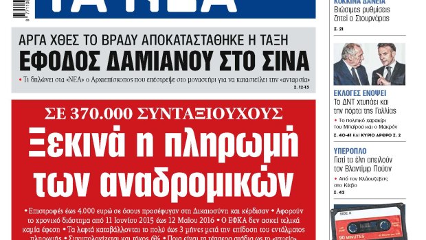 Στα «ΝΕΑ» της Τετάρτης: Ξεκινά η πληρωμή των αναδρομικών