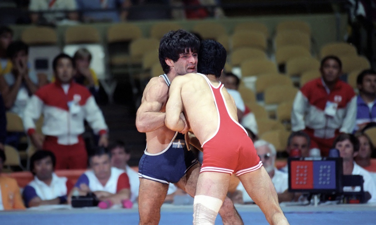 1984 Ο Δημήτρης Θανόπουλος κατακτά το αργυρό μετάλλιο στην κατηγορία 82 κιλών της ελληνορωμαϊκής πάλης στους Ολυ