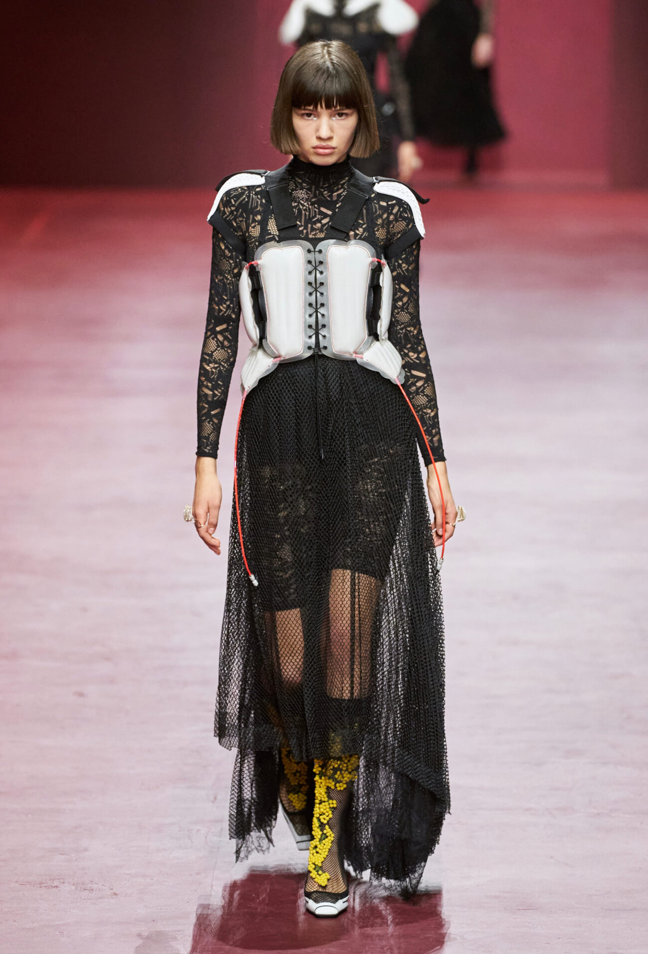 Η Rihanna ήταν πιο εντυπωσιακή και σέξι από ποτέ στην εμφάνισή της στην επίδειξη του Οίκου Dior στην Εβδομάδα Μόδας του Παρισιού την Τρίτη. Η τραγουδίστρια δε δίστασε να φορέσει ένα μαύρο δαντελένιο νεγκλιζέ από τη νέα κολεξιόν του οίκου Dior για το Φθινόπωρο/Χειμώνας 2022/23, το οποίο τόνιζε τις καμπύλες της. Η Ριάνα, η οποία ανακοίνωσε ότι περιμένει το πρώτο της παιδί με τον σύντροφό της A$AP Rocky τον Ιανουάριο, φόρεσε ένα μαύρο δαντελένιο σουτιέν και εσώρουχο κάτω από το διχτυωτό νεγκλιζέ και μια λεπτή δερμάτινη ζώνη ακριβώς κάτω από το στήθος της. Το λουκ ολοκλήρωσε ασημένια κοσμήματα και σκουλαρίκια, γυαλιστερές μαύρες μπότες μέχρι το γόνατο ενώ τα μαλλιά της ήταν πιασμένα μισά-μισά