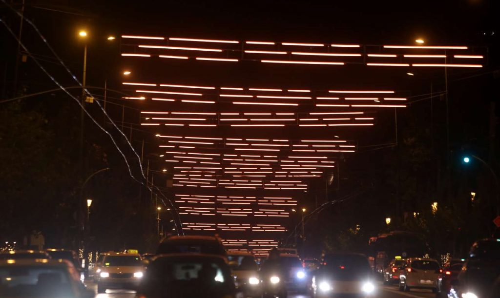 Όταν ο ουρανός της λεωφόρου Βασιλίσσης Σοφίας έγινε χριστουγεννιάτικος και φωτίστηκε με κάτι μπλε σωλήνες, οι περισσότεροι το είδαν σε φωτογραφία και ένιωσαν τόσο άβολα όσο όταν τρως αποδομημένο κανταΐφι ή μοριακές φακές. Ακούγεται ενδιαφέρουσα ιδέα, αλλά υστερεί στην εκτέλεση.