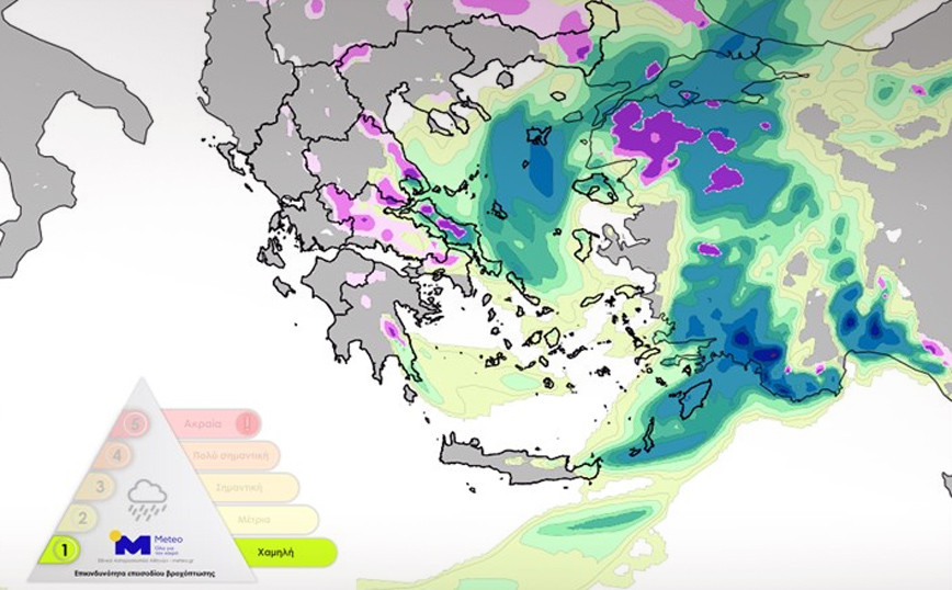 Βροχές και καταιγίδες αναμένονται έως το μεσημέρι της Τετάρτης σε Αιγαίο, Κρήτη, Θράκη, Μακεδονία, Θεσσαλία, Ανατολική Στερεά και Πελοπόννησο Αναβαθμίζεται σε κατηγορίας 3 ως προς τον Δείκτη Επικινδυνότητας Επεισοδίου Βροχόπτωσης (Regional Precipitation Index – RPI) η κακοκαιρία, σύμφωνα με τα τελευταία προγνωστικά δεδομένα του Εθνικού Αστεροσκοπείου Αθηνών / meteo.gr. Βροχές και καταιγίδες αναμένονται έως το μεσημέρι της Τετάρτης 23/02 σε Αιγαίο, Κρήτη, Θράκη, Μακεδονία, Θεσσαλία, Ανατολική Στερεά και Πελοπόννησο ενώ χιονοπτώσεις θα σημειωθούν σε ορεινά ηπειρωτικά τμήματα των παραπάνω περιοχών. Από το απόγευμα της Τετάρτης 23/02 έως και τις πρωινές ώρες της Πέμπτης 24/02, βροχές και καταιγίδες