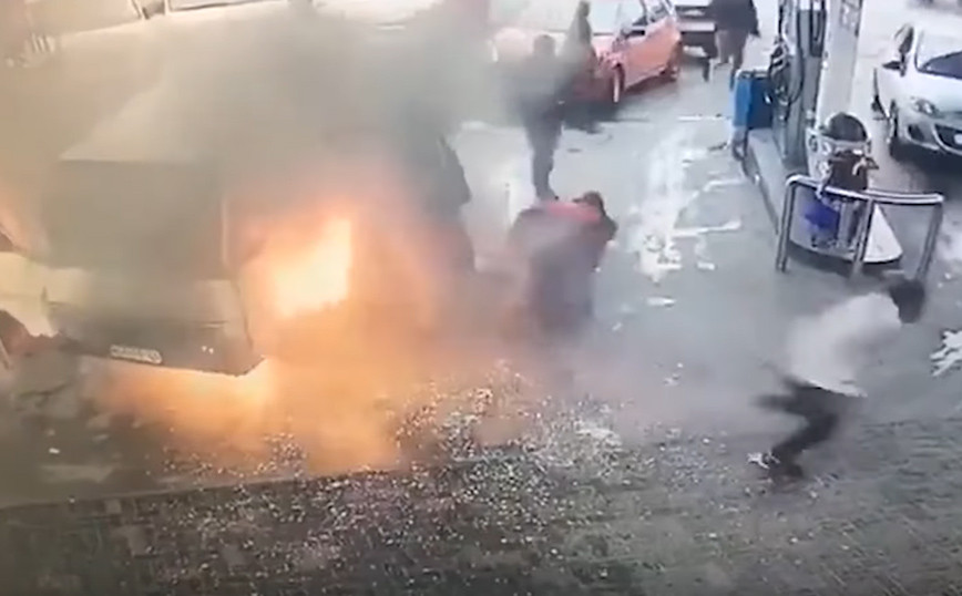 Τρομακτικό βίντεο με τις στιγμές που βανάκι πιάνει φωτιά σε βενζινάδικο – Απελπισμένοι βγαίνουν από τα παράθυρα