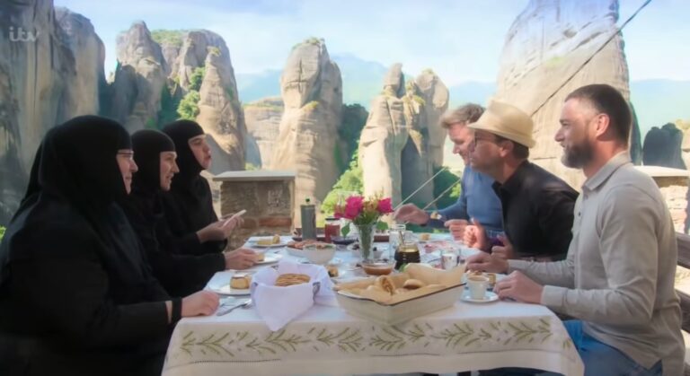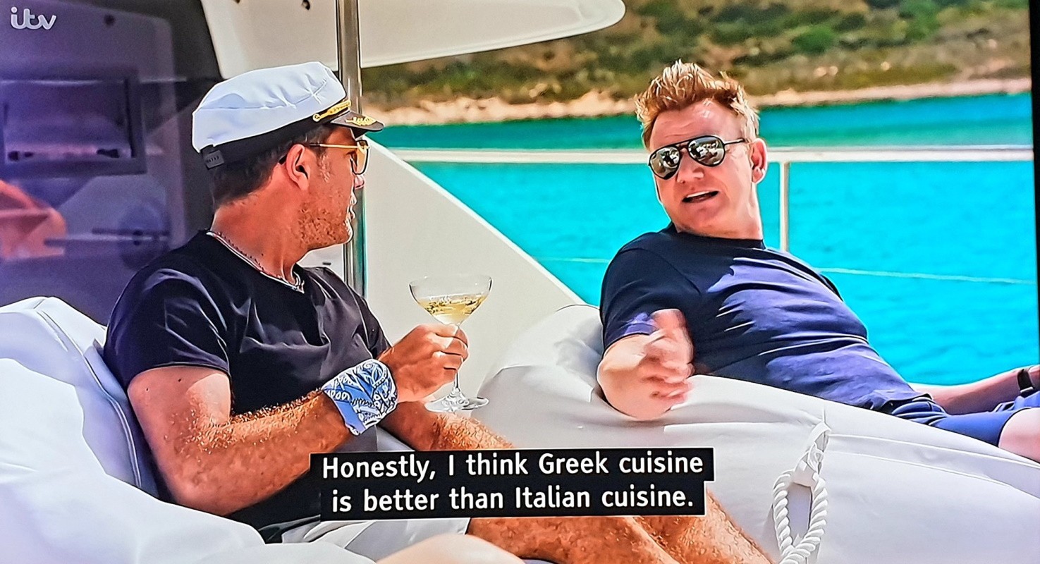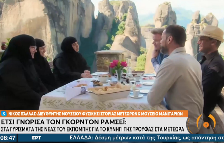 Στην Αθήνα βρέθηκε, μετά τη Σαντορίνη, ο Γκόρντον Ράμσεϊ, που συνεχίζει το οδοιπορικό του στην Ελλάδα. Ο Βρετανός σεφ, επισκέφθηκε αυτή τη φορά ένα σουβλατζίδικο στην πλατεία Αγίας Ειρήνης και έφτιαξε ένα -διαφορετικό- τυλιχτό σουβλάκι. Ο Ράμσεϊ και οι συνεργάτες του, ο σεφ Τζίνο Ντ’ Ακάμπο και ο μετρ ξενοδοχείων Φρεντ Σιριέ, επισκέφτηκαν πριν από λίγο καιρό τη χώρα μας και έκαναν γυρίσματα σε πολλές περιοχές, δοκιμάζοντας τις ελληνικές γεύσεις στην Κρήτη, τη Σαντορίνη, τη Μύκονο, την Αθήνα καθώς και τα Μετέωρα. Το οδοιπορικό τους μεταδίδεται στο τηλεοπτικό δίκτυο του ITV, που αυτή τη φορά έδωσε στη δημοσιότητα τα γυρίσματα από το σουβλατζίδικο στην Αγία Ειρήνη. Δεν έλειψαν τα πειράγματα