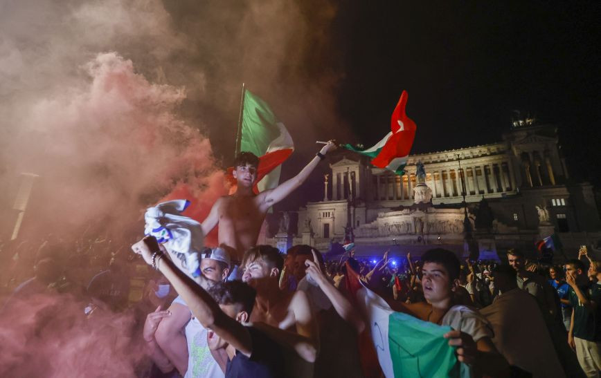 Φιέστα σε κάθε γωνιά της Ιταλίας για την κατάκτηση του Euro 2020, λαοθάλασσα στην Piazza Duomo του Μιλάνο και οι Ρωμαίοι φίλοι των Ατζούρι στο σιντριβάνι της Piazza Navona! Το πάρτι μόλις άρχισε. Καλεσμένη όλη η Ιταλία, μετά τον θρίαμβο και την κατάκτηση του Euro από την ομάδα του Ρομπέρτο Μαντσίνι μέσα στο «Γουέμπλεϊ». Με το τελευταίο σφύριγμα, οι φίλοι των Ατζούρι από κάθε γωνιά της χώρας ξεχύθηκαν στους δρόμους, στις μεγάλες πλατείες σε Μιλάνο και Ρώμη, δίνοντας το σύνθημα για ατελείωτο γλέντι. Στην Piazza Duomo, την οποία είχαν κατακλύσει οι φίλοι της Ίντερ στην κατάκτηση του Scudetto προ ολίγων μηνών, σχηματίστηκε λαοθάλασσα, ενώ στην πρωτεύουσα και την Piazza Navona οι οπαδοί της Σκ