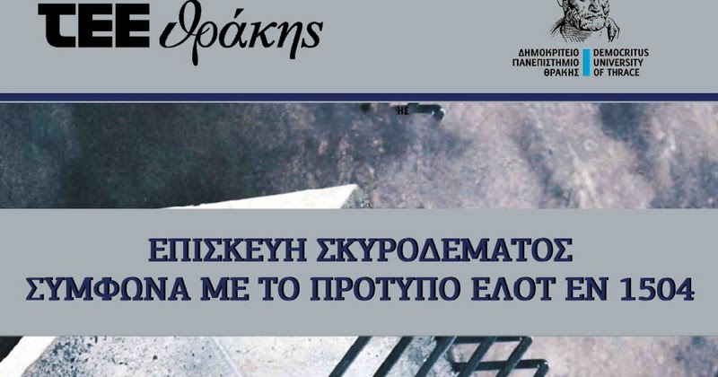 Το Περιφερειακό Τμήμα Θράκης του Τεχνικού Επιμελητηρίου Ελλάδας (ΤΕΕ) σε συνεργασία με το Δημοκρίτειο Πανεπιστήμιο Θράκης διοργανώνουν ημερίδα με θέμα: «Επισκευή Σκυροδέματος σύμφωνα με το πρότυπο ΕΛΟΤ ΕΝ 1504». Η Ημερίδα θα διεξαχθεί στην Αλεξανδρούπολη, στο ξενοδοχείο RAMADA PLAZA THRAKI, το Σάββατο 11 Ιανουαρίου 2020 με ώρα έναρξης 9:00 π.μ. Η είσοδος είναι ελεύθερη για όσους θέλουν να παρακολουθήσουν την Ημερίδα.ΠΡΟΓΡΑΜΜΑ ΗΜΕΡΙΔΑΣ:9.00-9.30: Προσέλευση09.30: Χαιρετισμοί09.45: «Επισκευές Κατασκευών Οπλισμένου Σκυροδέματος σύμφωνα με το Πρότυπο ΕΛΟΤ ΕΝ 1504»Κοσμάς Κ. Σίδερης, Καθηγητής ΔΠΘ10.15: «Εμφυτευόμενοι Αναστολείς Διάβρωσης τύπου κυψέλης για προστασία στοιχείων οπλισμών, σε υφιστάμενε