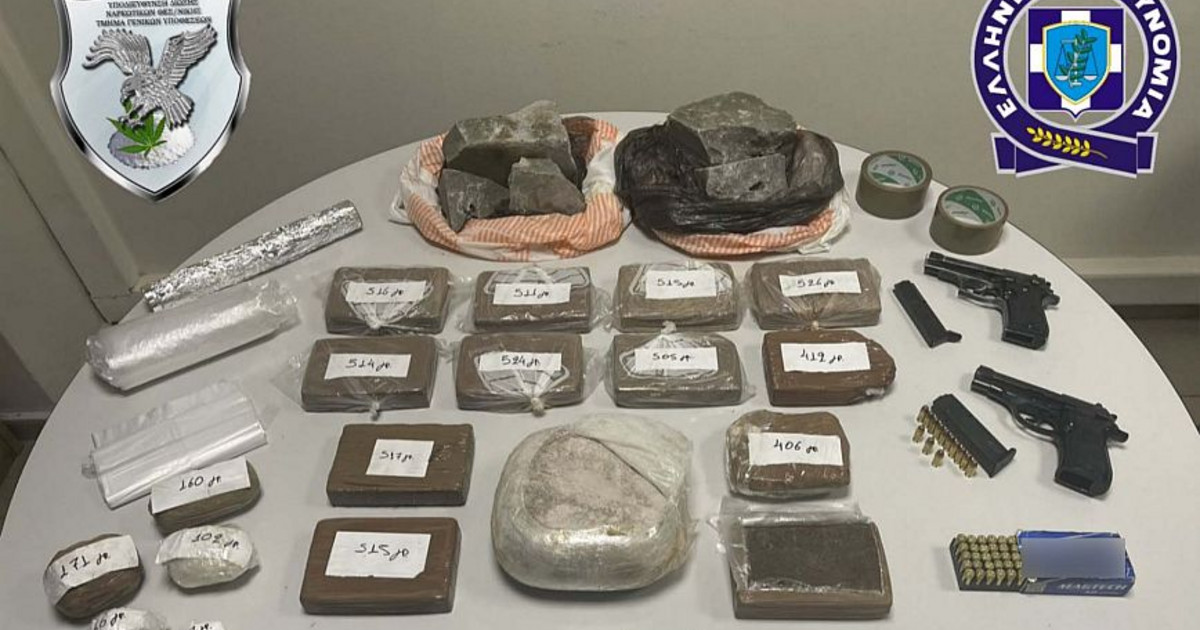 Αστυνομικοί της Υποδιεύθυνσης Δίωξης Ναρκωτικών της Διεύθυνσης Αντιμετώπισης Οργανωμένου Εγκλήματος, συνέλαβαν χθες στο πλαίσιο της αυτόφωρης διαδικασίας, δύο άτομα, τα οποία κατηγορούνται κατά περίπτωση ότι, ως μέλη εγκληματικής ομάδας, διεθνικού χαρακτήρα, δραστηριοποιούνταν στην εισαγωγή, κατοχή και διακίνηση εντός ελληνικής επικράτειας ναρκωτικών ουσιών. Ειδικότερα, σύμφωνα με την ΕΛΑΣ, κατά τον έλεγχο αποσκευών στον Διεθνή Αερολιμένα «Ελ. Βενιζέλος», εντοπίστηκαν 2 αποσκευές που περιείχαν ακατέργαστη κάνναβη και προορίζονταν για τον αερολιμένα της Σαντορίνης. Στο πλαίσιο αυτό, οργανώθηκε και υλοποιήθηκε αστυνομική επιχείρηση, υπό το συντονισμό του Συντονιστικού Οργάνου Δίωξης Ναρκωτι
