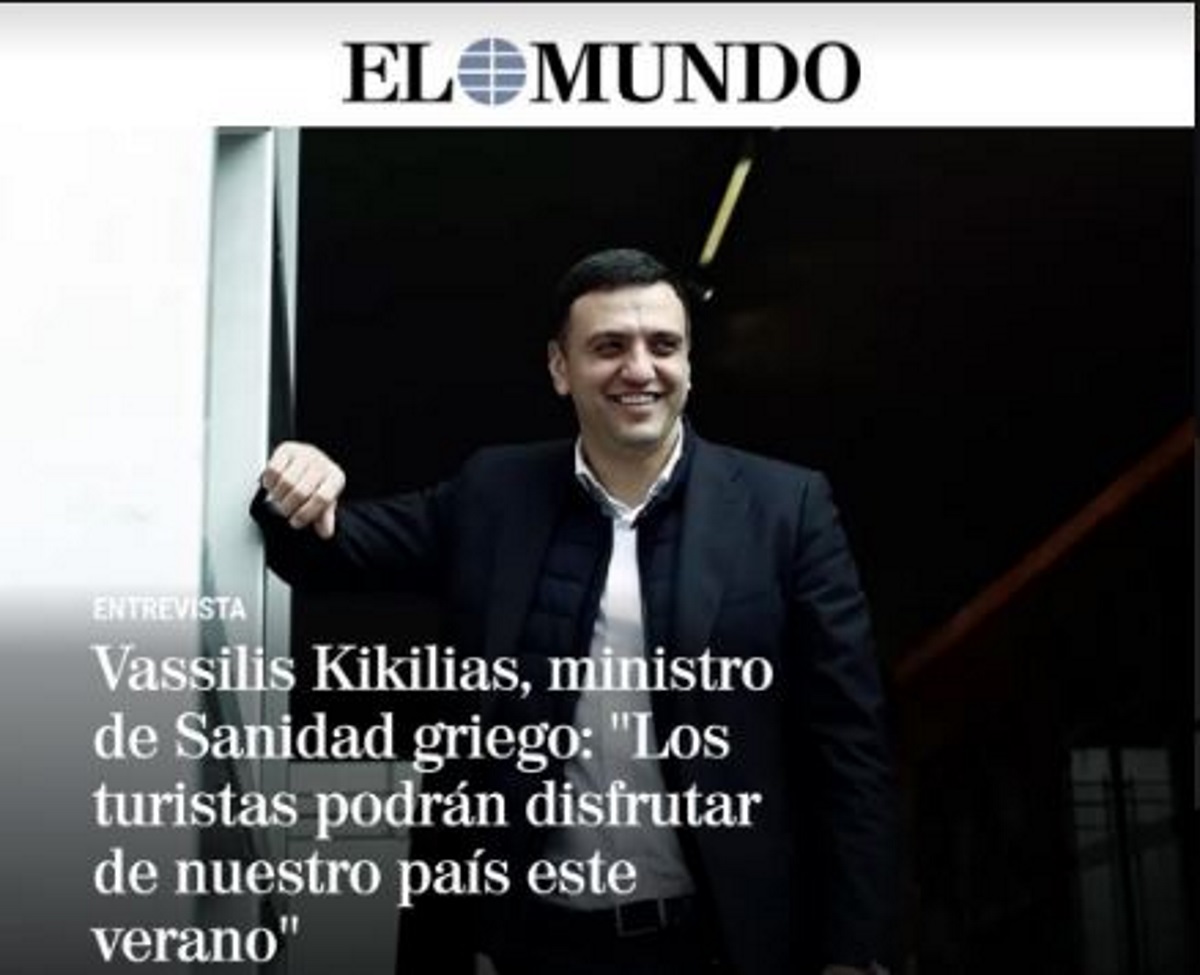 Mε τίτλο «Οι τουρίστες θα μπορέσουν να απολαύσουν την Ελλάδα αυτό το καλοκαίρι», η ισπανική εφημερίδα «El Mundo» δημοσιεύει συνέντευξη του υπουργού Υγείας, Βασίλη Κικίλια. Σύμφωνα με ανακοίνωση του υπουργείου Υγείας, μεταξύ άλλων, στον πρόλογο της συνέντευξης αναφέρεται πως «παρά τις περικοπές στον τομέα της υγείας λόγω ετών λιτότητας και τους πολύ πιο περιορισμένους πόρους […] Β.Κικίλιας: Οι τουρίστες θα μπορέσουν να απολαύσουν την Ελλάδα αυτό το καλοκαίρι on BLUE SKY.