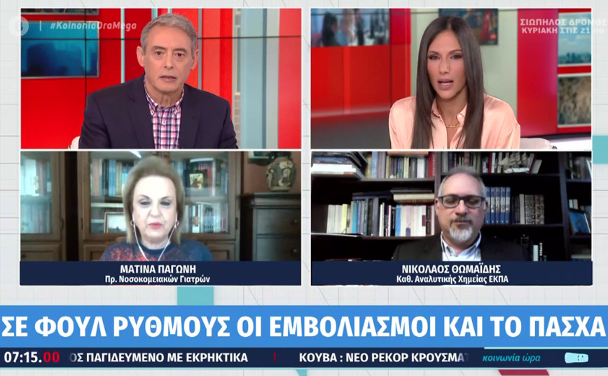 Για την πανδημία, τους εμβολιασμού, αλλά και την περίοδο του Πάσχα μίλησαν η Ματίνα Παγώνη, πρόεδρος των Νοσοκομειακών Γιατρών και ο Νικόλαος Θωμαΐδης, καθηγητής Αναλυτικής Χημείας στο ΕΚΠΑ.