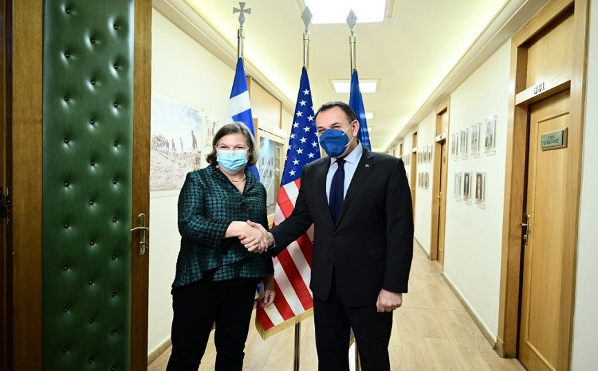 Η ανανεωμένη Συμφωνία Αμοιβαίας Αμυντικής Συνεργασίας (ΜDCA) Ελλάδας – ΗΠΑ συμβάλλει στην επέκταση και εμβάθυνση της στρατηγικής αμυντικής εταιρικής σχέσης των δύο χωρών. Αυτό τονίστηκε κατά τη διάρκεια της συνάντησης που είχε, σήμερα, Τρίτη 5 Απριλίου, ο υπουργός Εθνικής Άμυνας Νίκος Παναγιωτόπουλος με την υφυπουργό Εξωτερικών των ΗΠΑ, αρμόδια για Πολιτικές Υποθέσεις, πρέσβη Βικτόρια Νούλαντ. Κατά τη συζήτησή τους, υπογραμμίστηκε, επίσης, η ευρεία συνεργασία των δύο χωρών στον εξοπλιστικό τομέα και οι δυνατότητες περαιτέρω ενισχύσεώς της με, αμοιβαίως επωφελή, εξοπλιστικά προγράμματα. Αναλυτικά, η ανακοίνωση του ΥΠΕΘΑ αναφέρει: «O Υπουργός Εθνικής Άμυνας κ. Νικόλαος Παναγιωτόπουλος