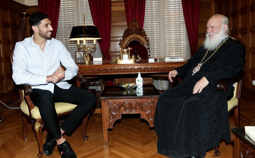 Τον αρχιεπίσκοπο Αθηνών και πάσης Ελλάδος Ιερώνυμο επισκέφθηκε σήμερα το μεσημέρι ο Τούρκος επαγγελματίας καλαθοσφαιριστής Ενές Καντέρ, που διαπρέπει στο NBA. Πώς του φαίνεται η Ελλάδα ρώτησε ο αρχιεπίσκοπος τον Ενές Καντέρ, ο οποίος απάντησε ότι έχει επισκεφτεί πολλές φορές τη χώρα μας, ότι αισθάνεται πως «είμαστε μία οικογένεια». Επίσης, τόνισε ότι δεν μπορεί να καταλάβει για ποιο λόγο υπάρχει σύγκρουση μεταξύ των δύο χωρών, Ελλάδας και Τουρκίας, ενώ μας συνδέουν τόσο πολλά. Ο μακαριώτατος επισήμανε ότι οι λαοί είναι αγαπημένοι και πως οι συγκρούσεις αφορούν μόνον πρόσωπα. «Να ευχηθούμε ο Θεός να φωτίσει όλους τους άρχοντες και στην Τουρκία και στην Ελλάδα, ακόμη και στην Αμερική, να υπ