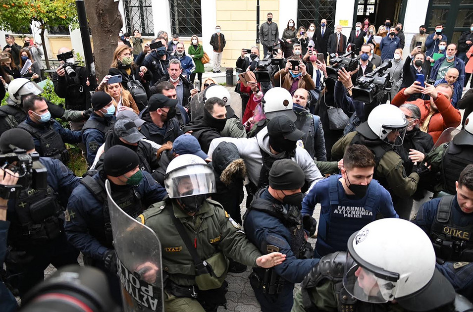 Απίστευτες εικόνες στην Ευελπίδων κατά την άφιξη της Ρούλας Πισπιρίγκου, που κατηγορείται ότι σκότωσε την 9χρονη Τζωρτζίνα. Η 33χρονη μεταφέρθηκε με πρωτοφανή μέτρα ασφαλείας από το κτίριο της εισαγγελίας στο ανακριτικό γραφείο. Τα ΜΑΤ έκαναν ένα πρωτόγνωρο κλοιό με ασπίδες γύρω από την καταγορούμενη, κάτι που σπάνιες φορές έχει γίνει σε περιπτώσεις εγκλημάτων. Δεκάδες πολίτες είχαν συγκεντρωθεί στα δικαστήρια και έβριζαν τη Ρούλα Πισπιρίγκου. «Ομολόγησε για να λυτρωθείς», «σκύλα, βρωμιάρα, φόνισσα«, «ντροπή», «λιθοβολισμό μέχρι τέλους» ήταν κάποια από τα λόγια των εξοργισμένων πολιτών, που κατέγραφαν με τα κινητά τους την άφιξη. Δείτε τις φωτογραφίες: