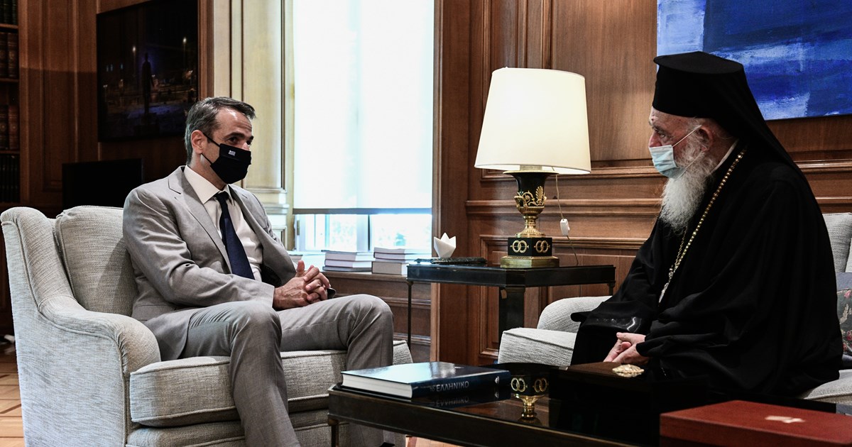 Ο Αρχιεπίσκοπος Ιερώνυμος υποδέχτηκε τον πρωθυπουργό και οι δυο τους συζήτησαν για την εξέλιξη της πανδημίας και την ανάγκη να επεκταθούν οι εμβολιασμοί στη χώρα και να διατηρηθούν στο μέγιστο τα μέτρα προστασίας.