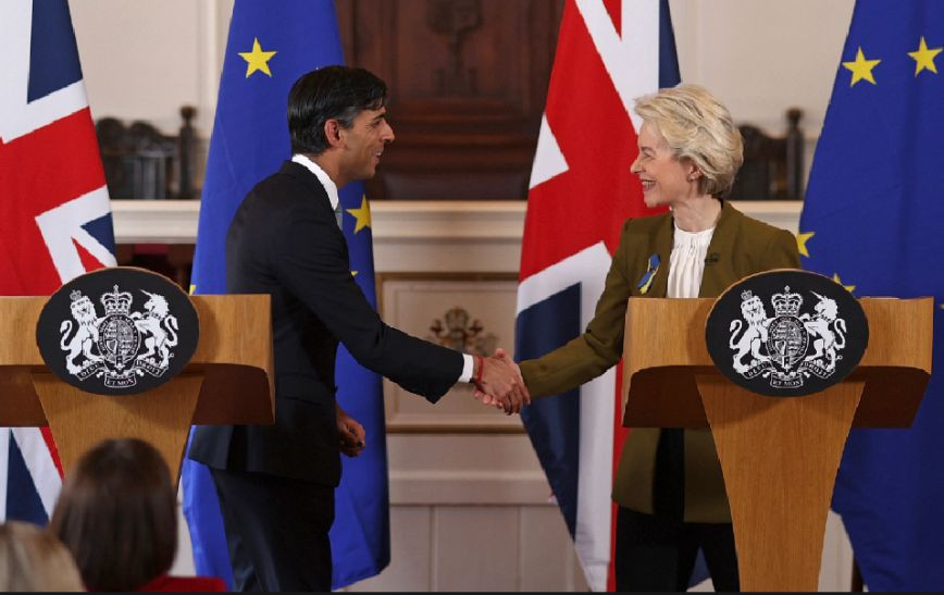 Η Βρετανία δεν θα προχωρήσει με τη νομοθεσία που ήταν σχεδιασμένη για την παράκαμψη ορισμένων εμπορικών κανόνων για την Βόρεια Ιρλανδία, στην μετά Brexit εποχή, ανακοίνωσε σήμερα η βρετανική κυβέρνηση μετά την επίτευξη νέας συμφωνίας με την Ευρωπαϊκή Ένωση. «Η κυβέρνηση του Ηνωμένου Βασιλείου δεν θα προχωρήσει πλέον με το Νομοσχέδιο για το Πρωτόκολλο της Βόρειας Ιρλανδίας, καθώς το Ηνωμένο Βασίλειο και η ΕΕ κατέληξαν σε συμφωνία κατόπιν διαπραγματεύσεων», ανέφερε το γραφείο του πρωθυπουργού Ρίσι Σούνακ. Η συμφωνία σημαίνει επίσης ότι η ΕΕ θα αποσύρει όλες τις νομικές ενέργειες που έχει ξεκινήσει κατά της Βρετανίας, υπογραμμίζει η ανακοίνωση. «Το Ηνωμένο Βασίλειο και η ΕΕ συμφώνησαν να συν