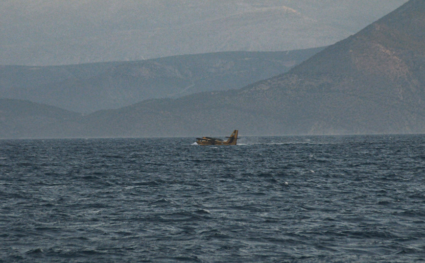 Εικόνες από τη μεγάλη φωτιά στον Σχίνο Κορινθίας, πυροσβεστικά αεροπλάνα άρχισαν τις ρίψεις νερού